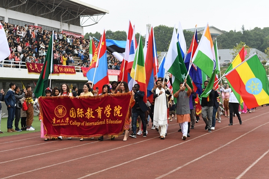 贵大新闻网讯(记者团 蔡佳 实习记者 唐兆龙 潘巧玲|摄影 陈恒)11月15日上午,第十三届体育节开幕式在北校区体育场举行。校领导陈坚、宋宝安、王红蕾、金道超、汪海波出席本次开幕式。校党委副书记骆长江主持本次开幕式。