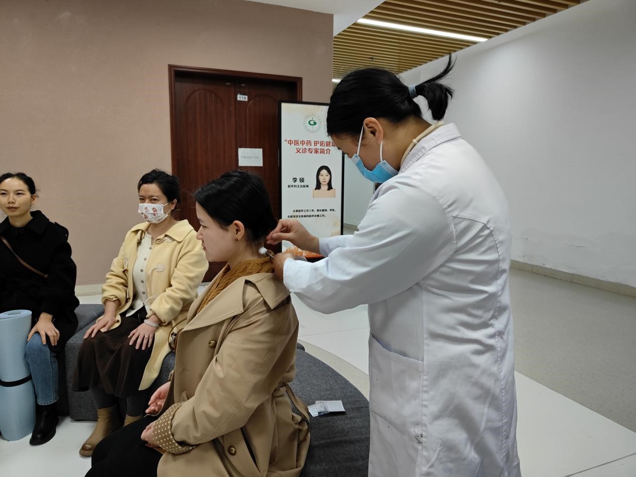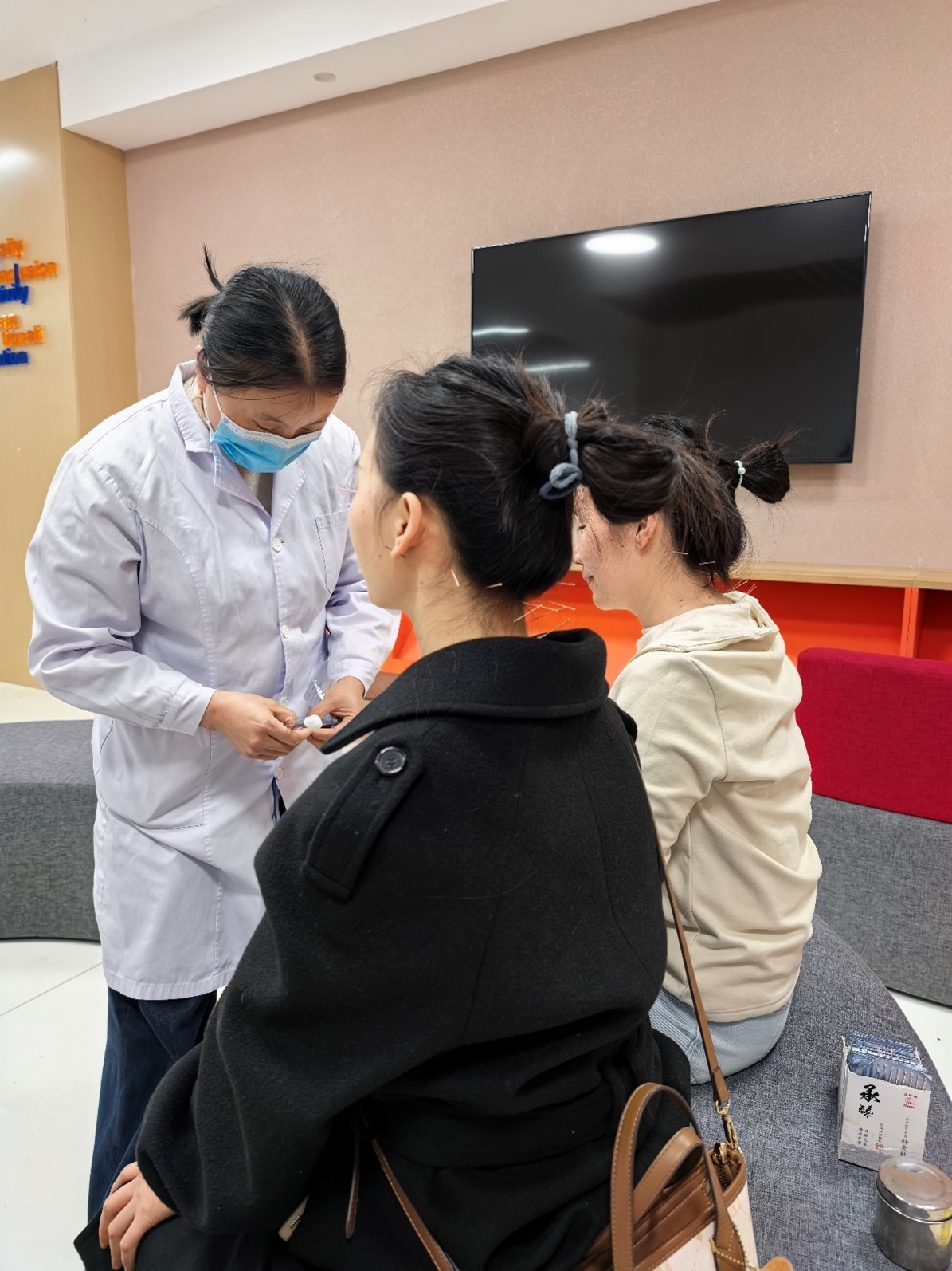 在健康宣讲环节,三位专家分别围绕“女性卵巢功能保健”“中医美容”及“秋冬中医调理策略”展开分享。妇科副主任医师曹俊岩从中医角度提出养护建议,主治医师黄景清介绍了内调外养的美容理念,护士长李雪则结合季节特点讲解顺时养生策略。内容贴近实际,引起在场师生广泛共鸣。