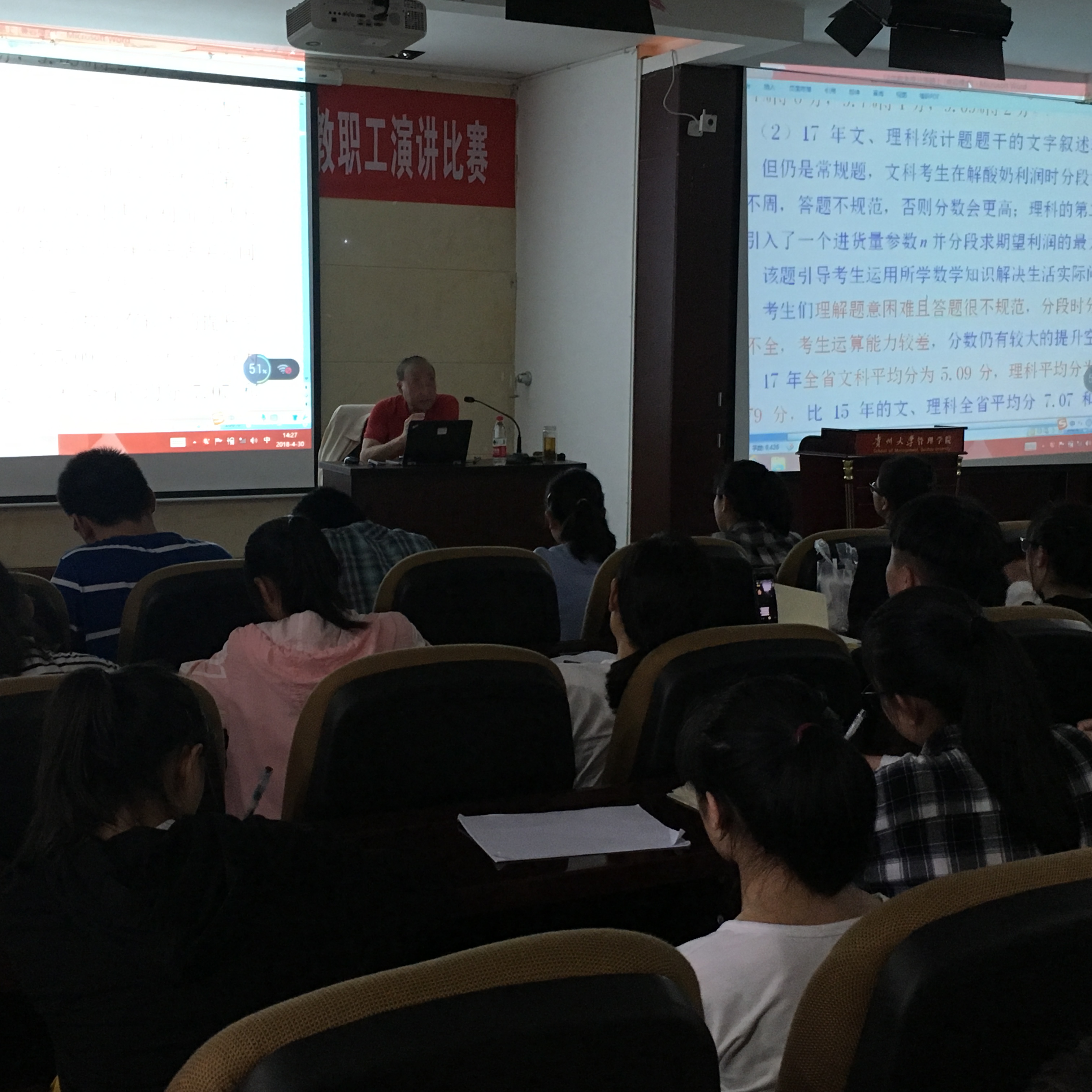 为了让教职工子女更好备战2018年高考,有效提升备考效果,4月30日,校工会特邀请我校周国利教授作高考数学复习与答题技巧的专场讲座。周国利教授参加贵州省高考评卷三十多年,任历届贵州高考数学评卷组副大组长,对初等数学和高等数学题型研究有很深的造诣。