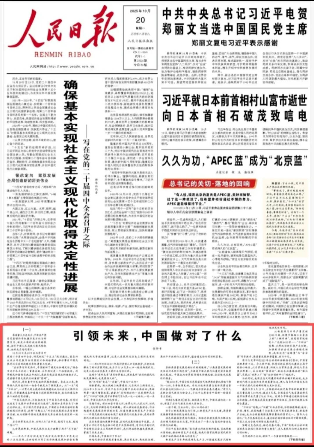 2025年10月20日《人民日报》头版