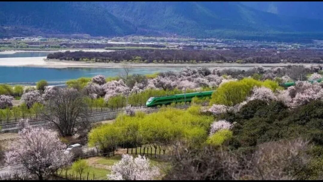 2025年4月2日,复兴号列车穿行在拉林铁路林芝段。新华社记者 晋美多吉 摄