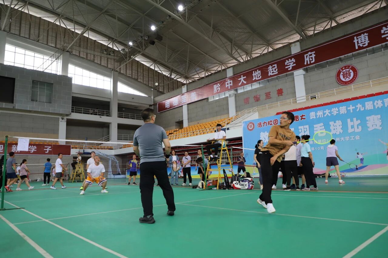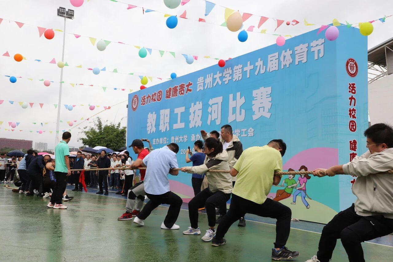 2025年10月16日上午,由校工会承办的贵州大学第十九届体育节教职工拔河比赛、羽毛球比赛和田径比赛在东校区体育馆相继举行,共计有800余名教职工参与各类比赛。